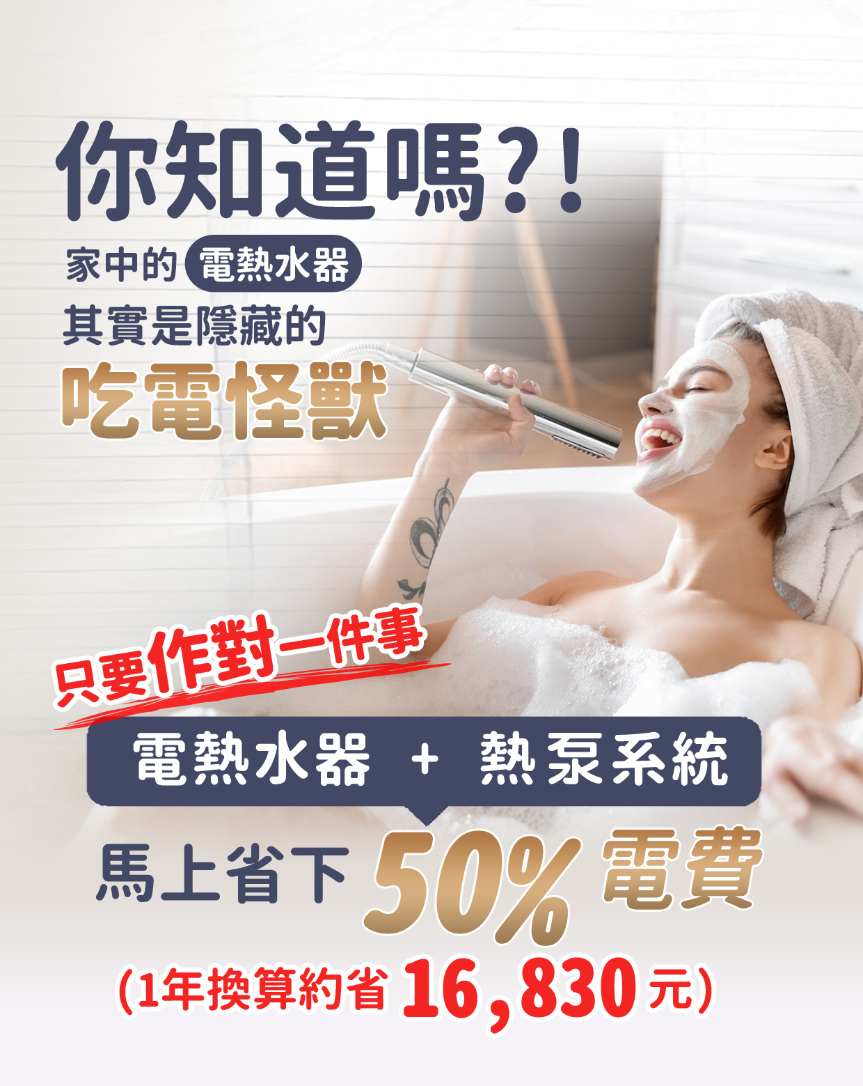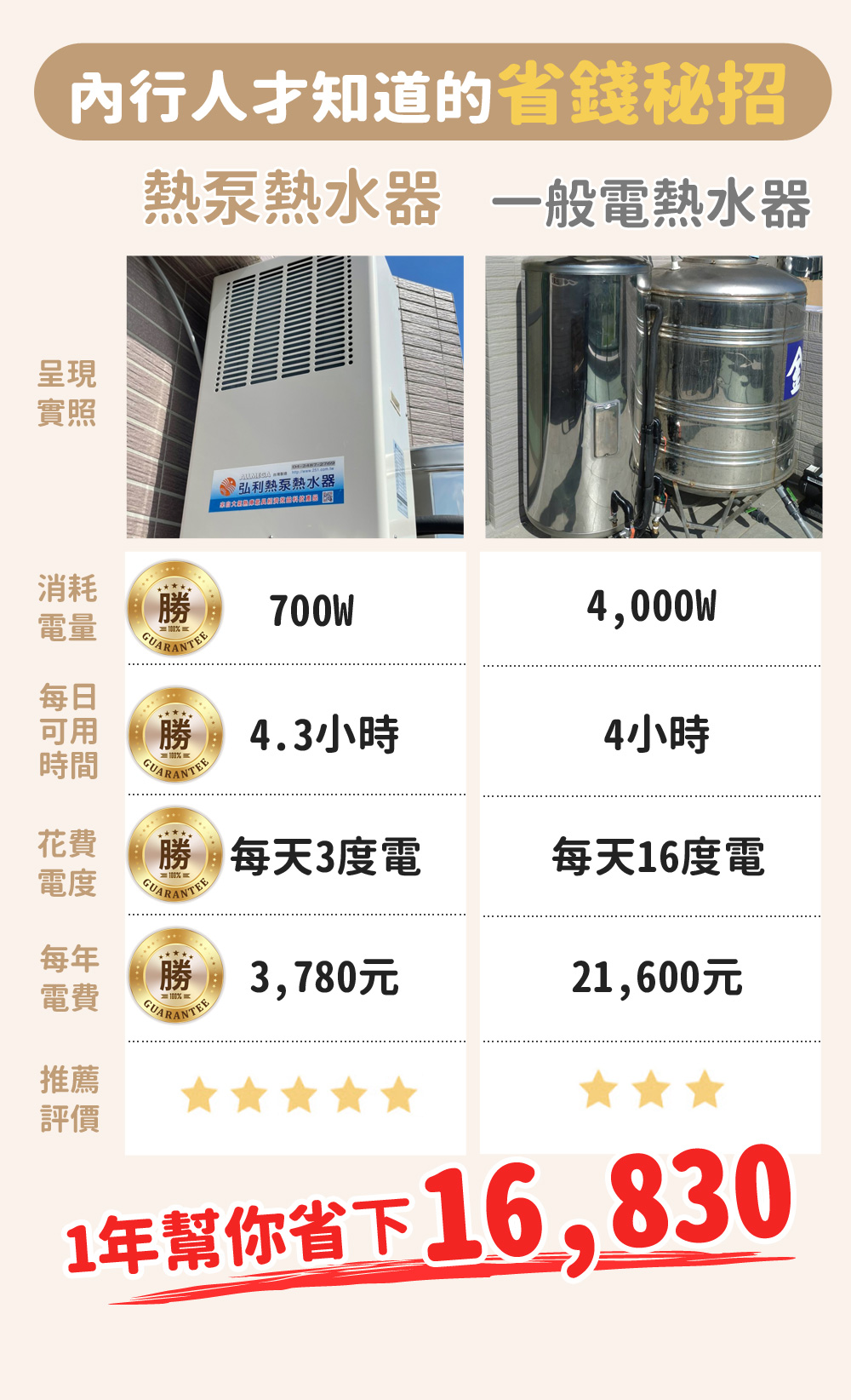 - 高效節能:與傳統電熱水器相比,熱泵熱水器省下約80%的電費;與瓦斯熱水器相比,也能節省近50%的開銷。
